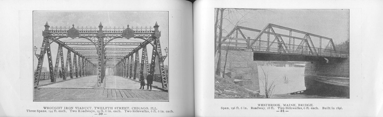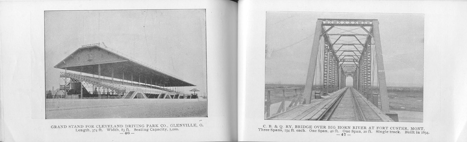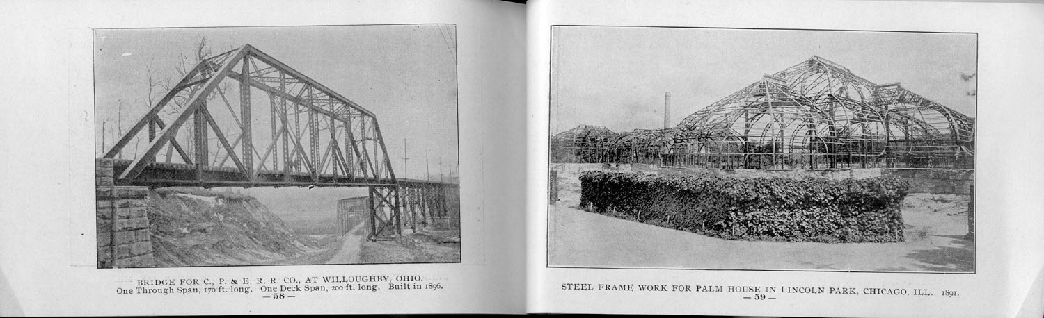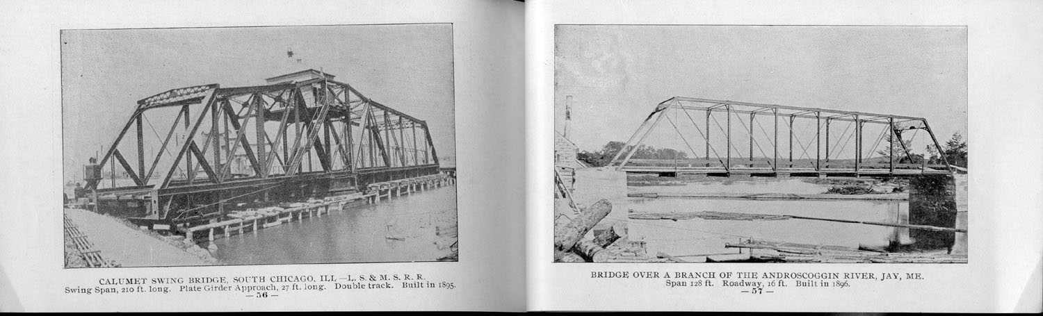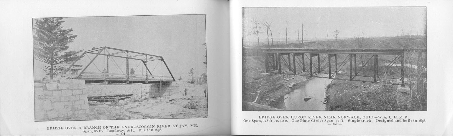 Please be patient with these downloads, they are very detailed pages from the catalogue. Notice the Gold Leaf lettering on this beautiful catalogue cover. This catalogue is courtesy of the National Park Service, historic American Engineering Record (HAER) in Washington D.C. Special thanks to Chief Eric DeLony for a copy of this catalogue and to Pete Brooks at HAER for providing the scans. Visit the HAER website at http://www.cr.nps.gov/habshaer/haer/ |