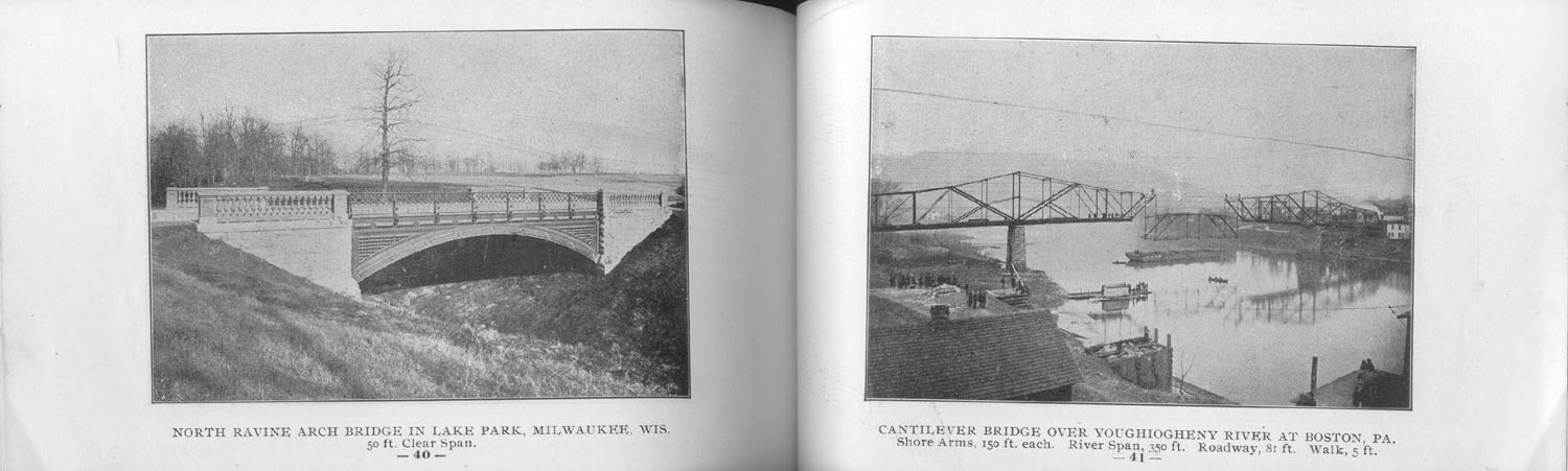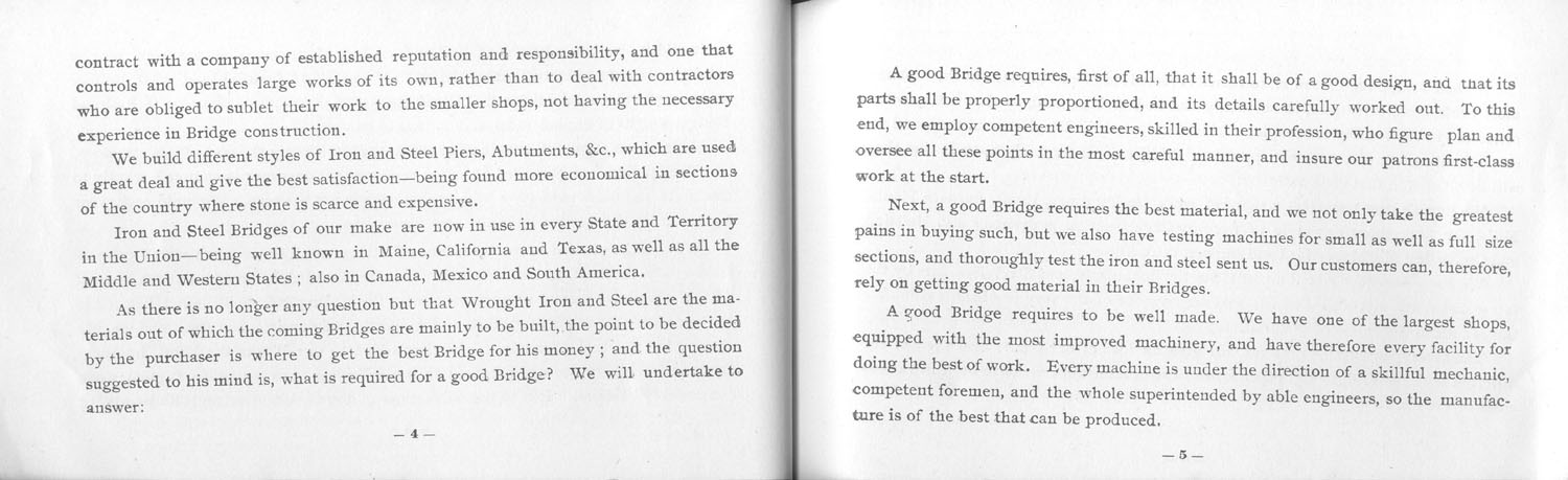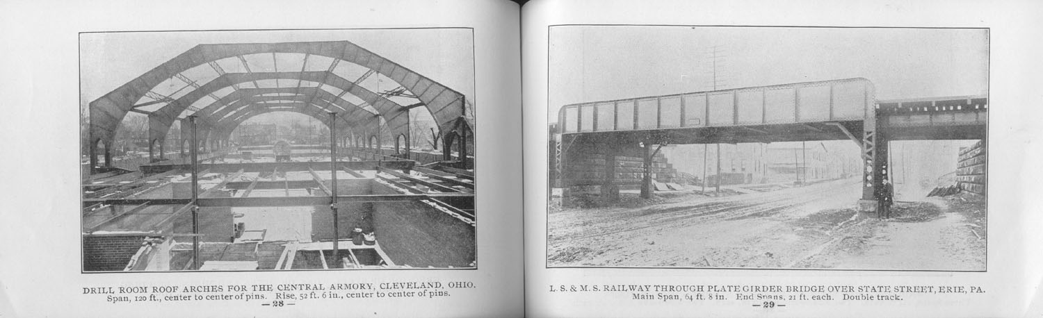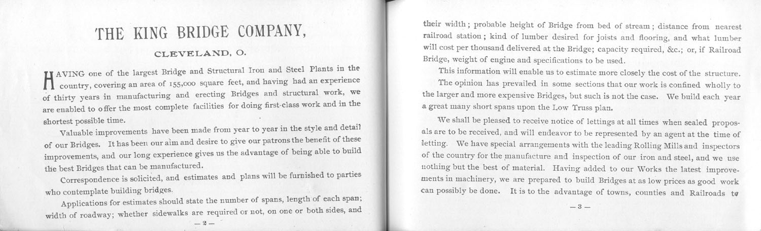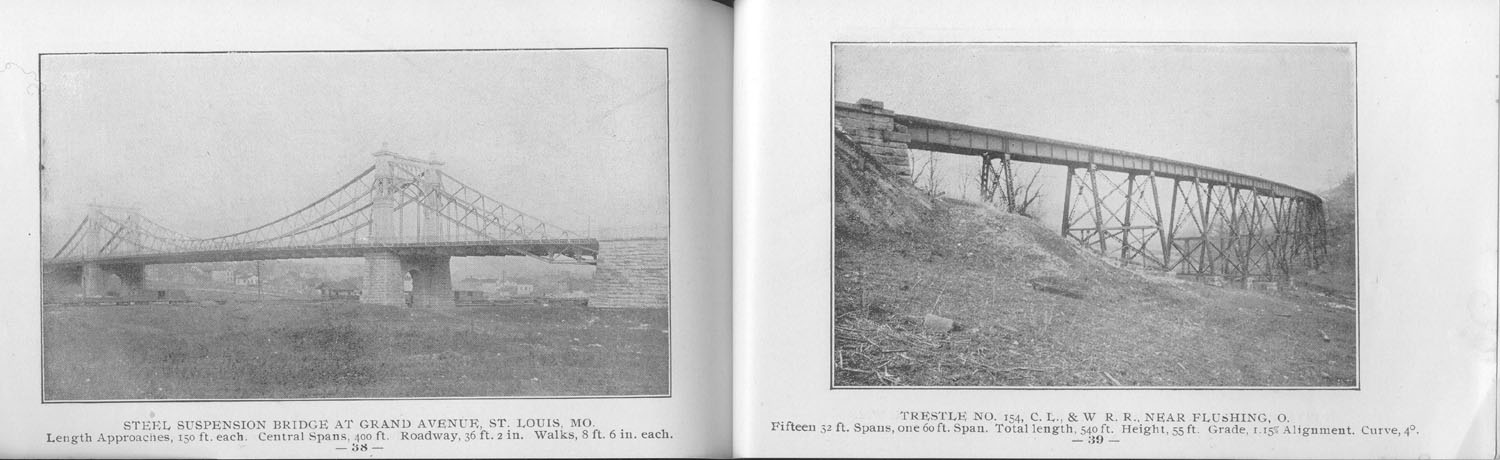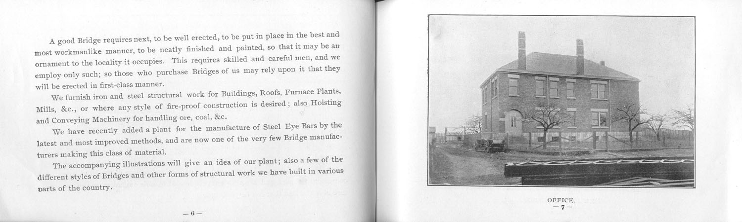 Please be patient with these downloads, they are very detailed pages from the catalogue. Notice the Gold Leaf lettering on this beautiful catalogue cover. This catalogue is courtesy of the National Park Service, historic American Engineering Record (HAER) in Washington D.C. Special thanks to Chief Eric DeLony for a copy of this catalogue and to Pete Brooks at HAER for providing the scans. Visit the HAER website at http://www.cr.nps.gov/habshaer/haer/ |