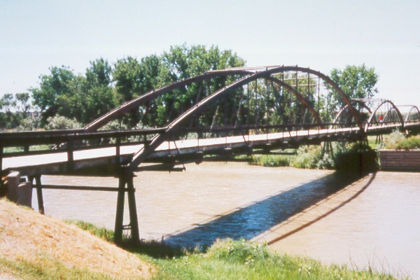 Fort Laramie Army Bridge spanning the North Platte River at Fort Laramie, Wyoming.