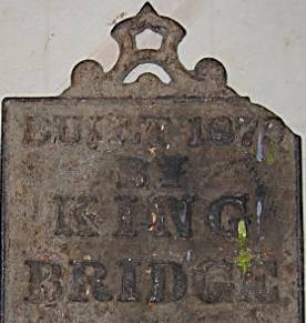 If you have any new King Bridge information; progress on a restoration project, a new bridge “discovery”, photos and pictures, builder’s plates or other memorabilia, important bridge web sites, etc., please get in touch with us. We would like to update our site with the latest. We plan to add any new information before the end of 2005. Thanks. AKS