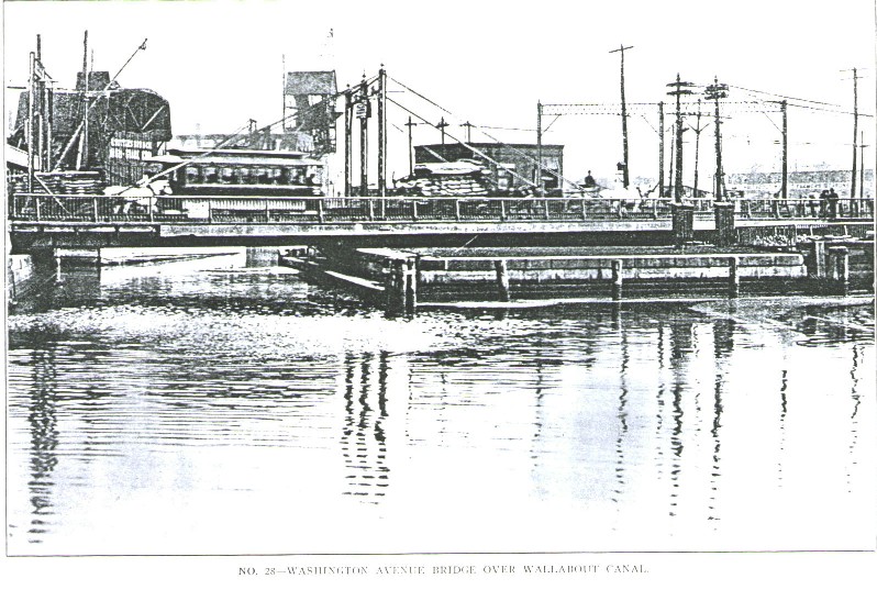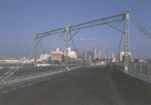 Two other moveable bridges were described in the King Bridge Company catalogues of the 1890s. One is in Dayton, Ohio, on Second Street over the Miami and Erie Canal. It was an unusual forty-five foot lift bridge with two eight foot walkways that appeared to have been moved up and down by some sort of hydraulic device. The other is a more familiar type turntable bridge over the tidal canal in Oakland, California. It had a draw span of 315 feet and two approach spans of thirty-three feet each with a roadway width of twenty-five feet. It had a profile similar to the University Heights Bridge in New York City, the Calumet River Bridge in South Chicago, and the center span of the Portage Lake Bridge in upper Michigan.