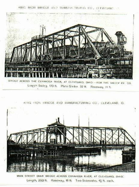 Later on in the 1880’s, two additional turntable bridges across the Cuyahoga River were listed in the King Bridge Company catalogues; the first, a 200-foot truss swing at Main Street with an 18-foot roadway and 9-foot sidewalks, the second, a bridge built for the Valley Railway Company consisting of a 170-foot swing span and a 32-foot plate girder. However, as both river and road and rail traffic increased, this type swing bridge built with a large pier in the middle of the river to support the turntable and its power mechanisms, became less desirable. New bridge building techniques, including bascules and vertical lifts, plus the construction of high level viaducts across the valley eliminated this navigation obstacle and made the turntable bridges obsolete. Most of these early King swings were replaced using this improved technology.