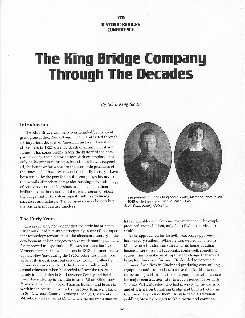 Paper delivered by Allan King Sloan at the 7th Historic Bridges Conference in Cleveland, Ohio