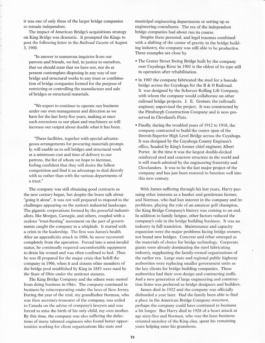 "THE KING BRIDGE COMPANY THROUGH THE DECADES"