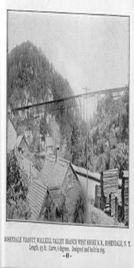 Trestles were among the most spectacular of the structures built for the railroads. The one pictured above was built for the Cleveland, Lorain and Western Railroad near Flushing, Ohio. It consisted of sixteen spans for a total length of 540 feet. The trestle pictured below was built in 1897 for the Wallkill Valley Branch of the New York Central’s West Shore Railroad across the Esopus Creek in Rosendale, New York to replace an earlier structure. The is the only one of the railroad bridges appearing in King Bridge Company catalogues that is still standing today, as we will describe later.