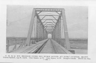 The first three of the four bridges pictured above were single span structures built in Indiana, West Virginia, near Fairmount, and Montana at Fort Custer. The fourth double track in the lower right frame was four span bridge built for the Delaware, Lackawanna and Western Railroad in Buffalo, New York.